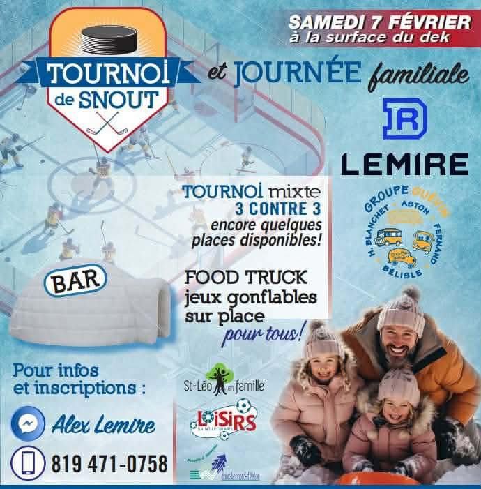 Le 7 février 2026, de 10 h à 17 h, se tiendra un évènement communautaire hivernal comprenant un tournoi de hockey bottines (snout) ainsi qu’une journée d’activités familiales gratuites. Ouvert à toute la population et à entrée libre, l’évènement vise à promouvoir l’activité physique, les saines habitudes de vie et le rassemblement citoyen en période hivernale. En plus du tournoi, le public pourra profiter de jeux gonflables, de jeux libres sur la grande patinoire et de la présence de food trucks, créant une ambiance conviviale et inclusive pour tous les groupes d’âge. Le hockey bottines, accessible et sans équipement spécialisé, favorise une large participation et l’inclusion. La subvention demandée permettra de soutenir l’organisation et la logistique de l’évènement afin d’assurer sa sécurité, sa qualité et son accessibilité universelle, tout en contribuant au dynamisme communautaire et à l’animation du milieu.